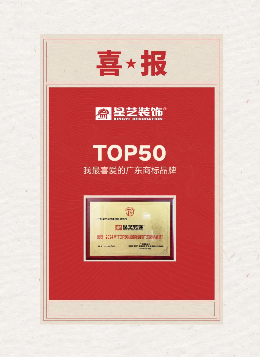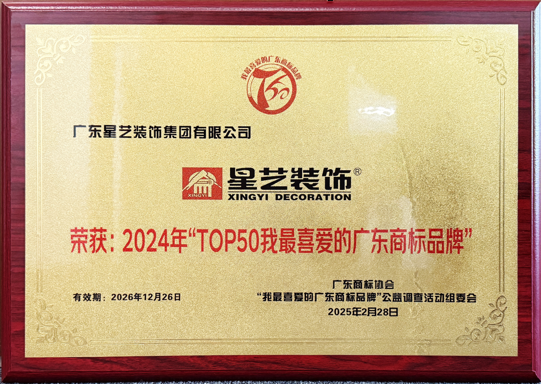 喜報 | 星藝裝飾榮登“2024年TOP50我最喜愛的廣東商標品牌”榜單